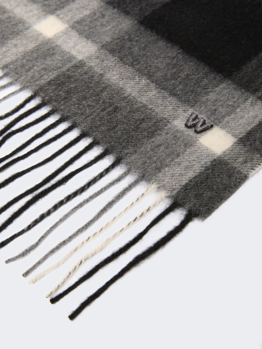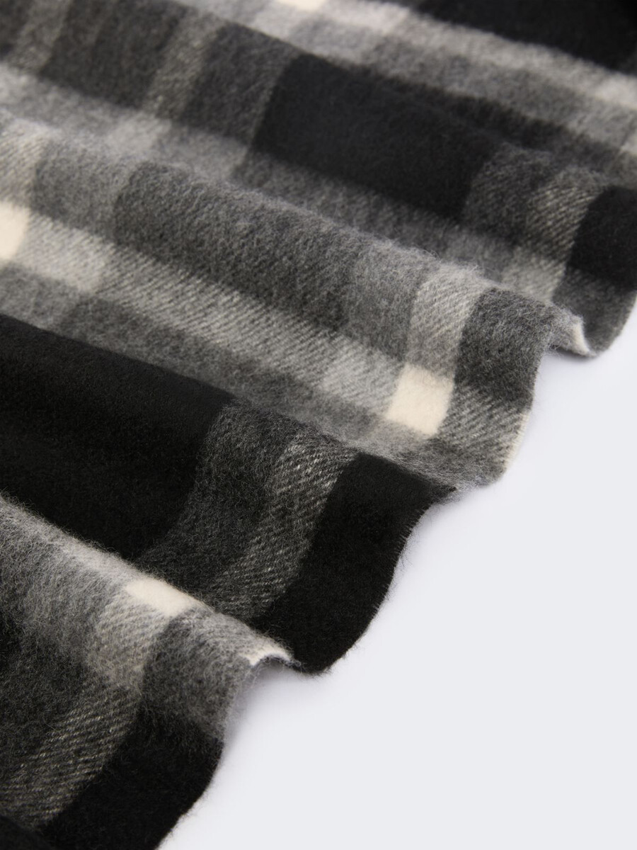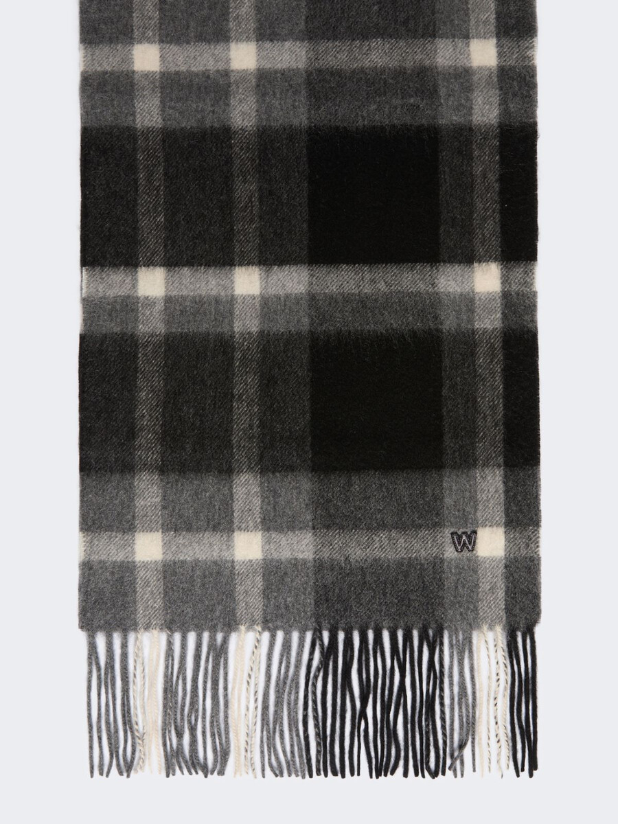 Sciarpa lunga rettangolare, impreziosita da un motivo jacquard e da un motivo tartan all-over.