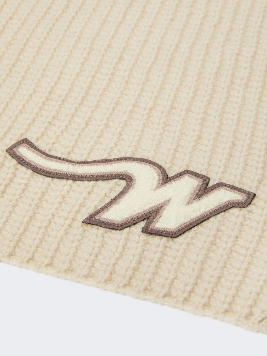 Sciarpa lunga e avvolgente, personalizzata con una toppa “W” sull’orlo.