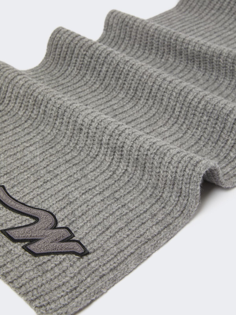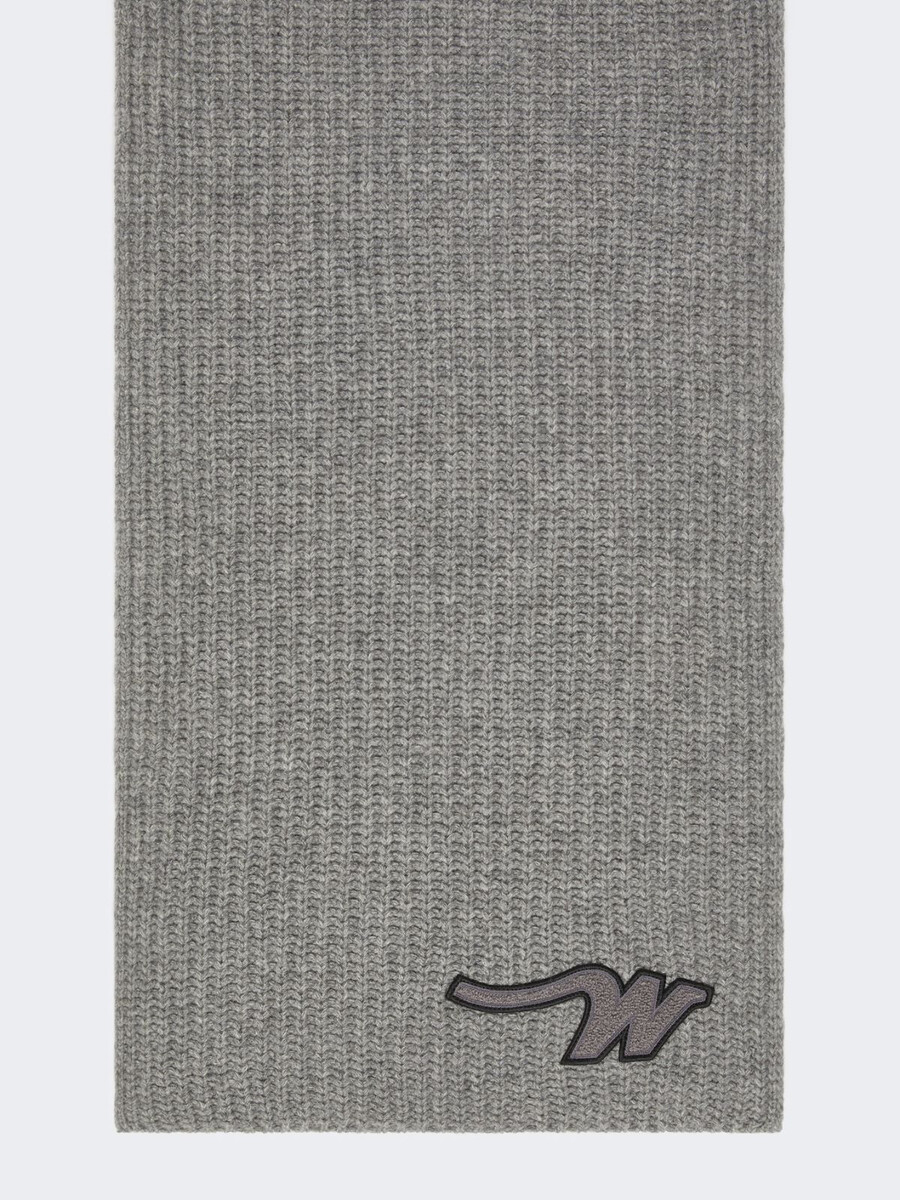 Sciarpa lunga e avvolgente, personalizzata con una toppa “W” sull’orlo.