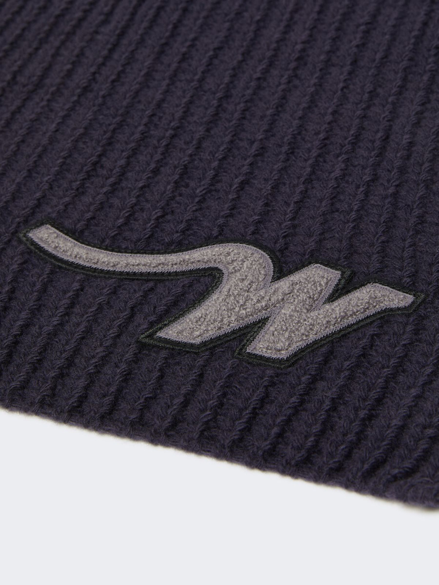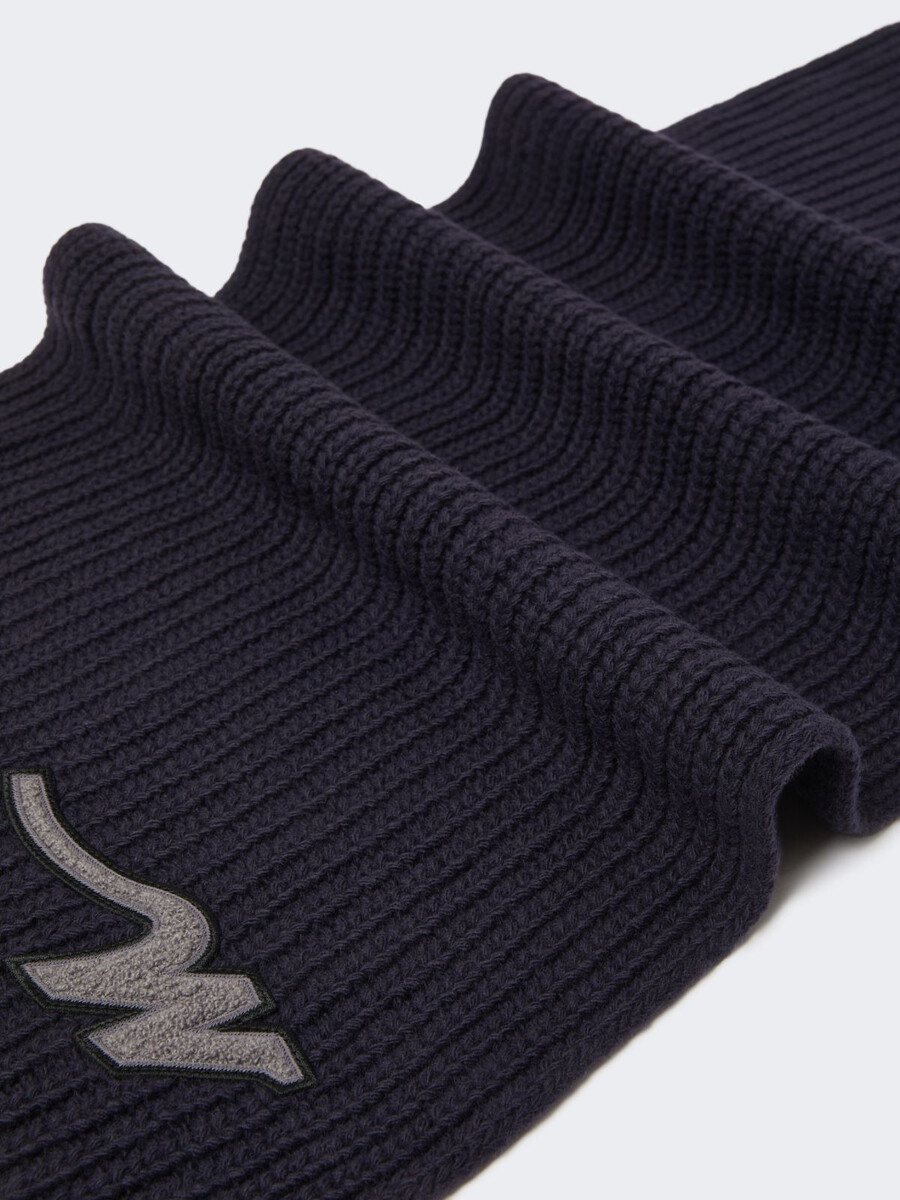 Sciarpa lunga e avvolgente, personalizzata con una toppa “W” sull’orlo.