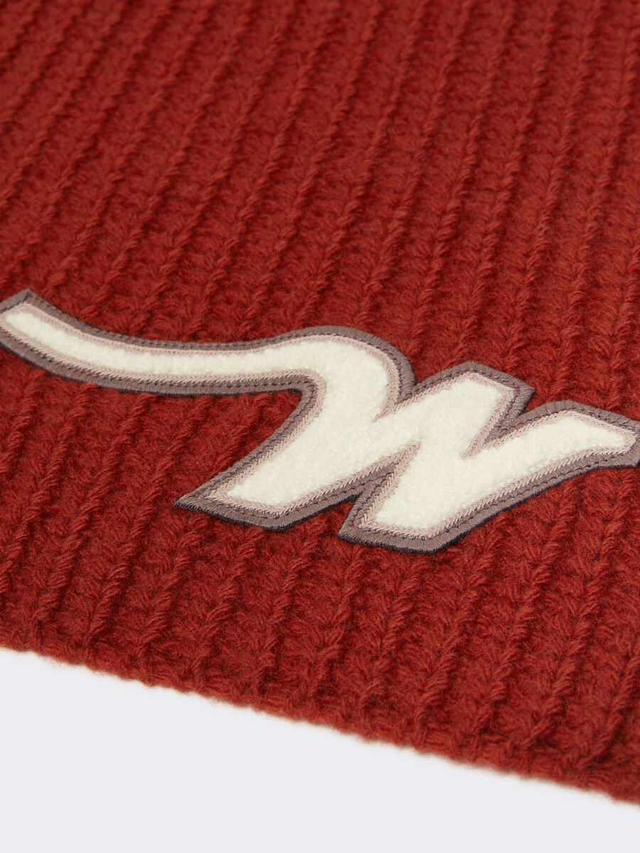 Sciarpa lunga e avvolgente, personalizzata con una toppa “W” sull’orlo.