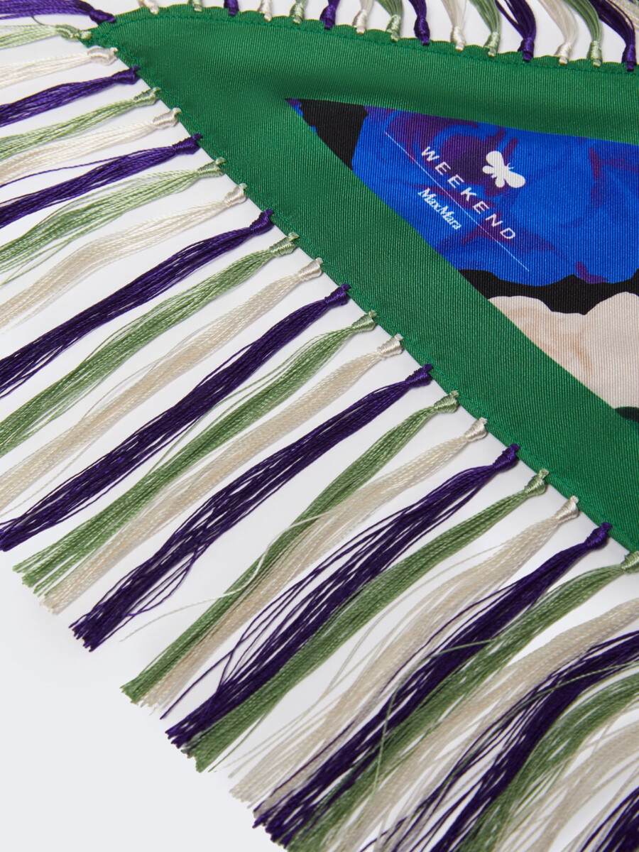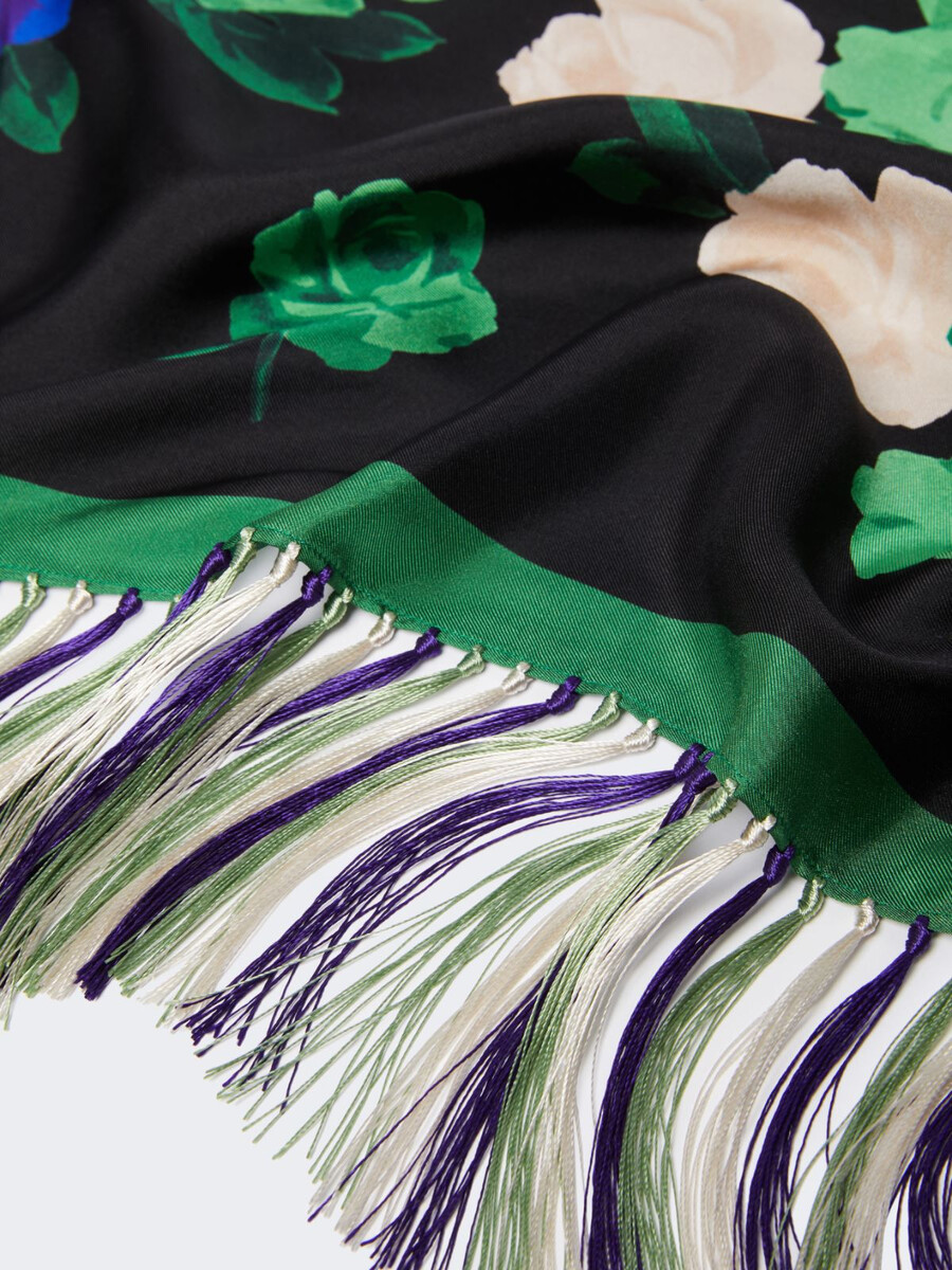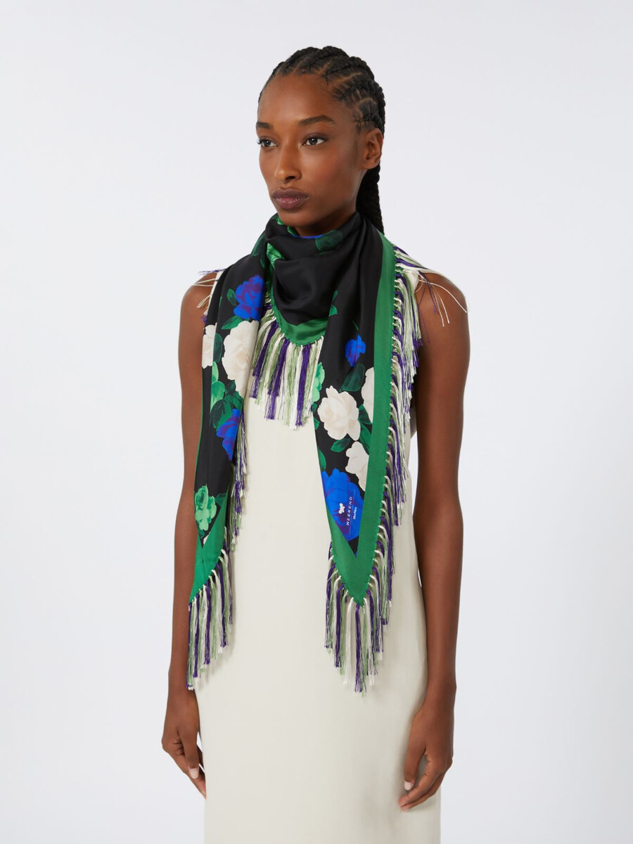 Sciarpa in seta stampata con frange – VERDE SCURO