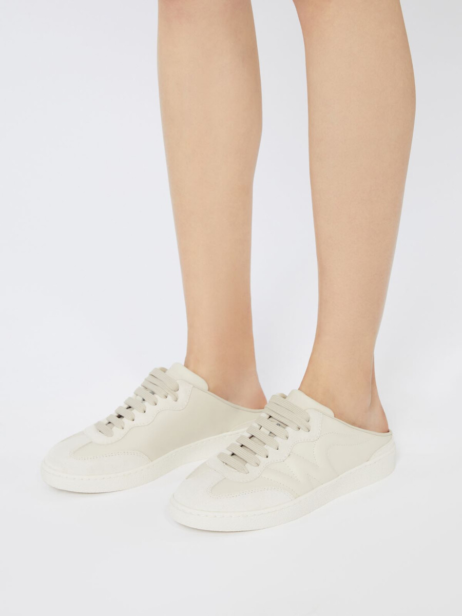 Sneakers mule stringate con “W” impunturata sul lato e dettagli in crosta di pelle.