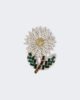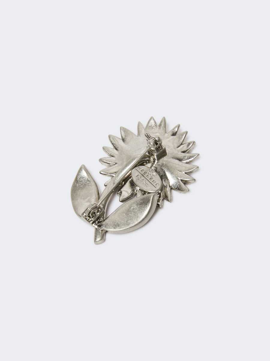 Spilla a forma di fiore composta da strass di varie forme e dimensioni.