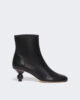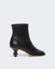 Stivaletti con punta arrotondata e tacco a sfera logato laccato tono su tono, ispirati all’iconica linea Pasticcino Bag. Il design esclusivo si sposa con la calzata stabile.
