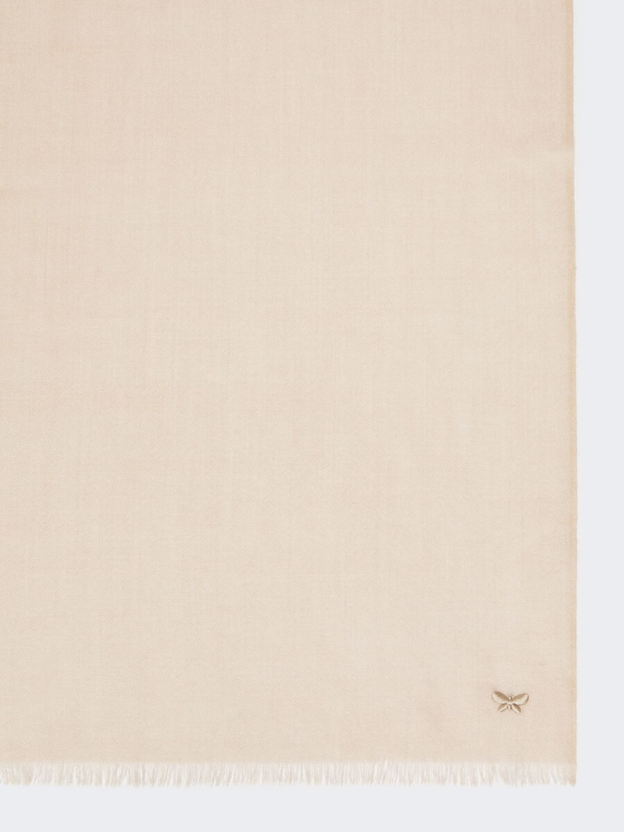 Stola rettangolare con piccolo logo a farfalla ricamato tono su tono su un lato, sull’orlo.