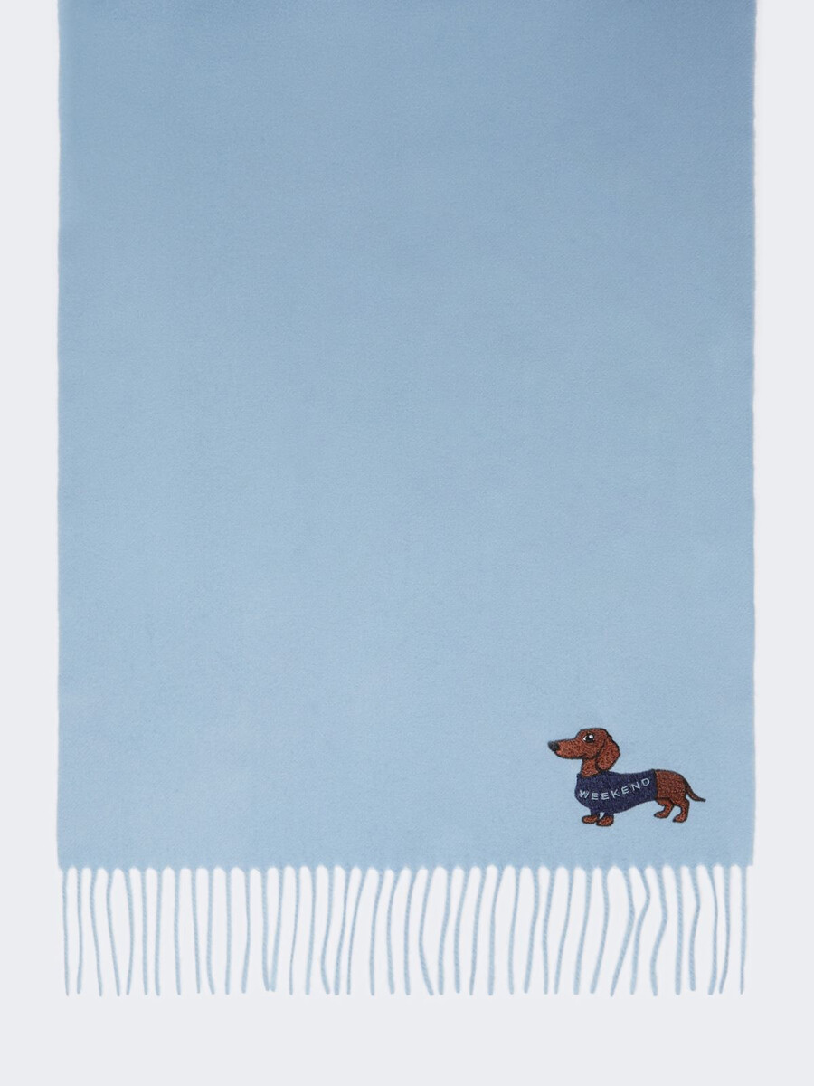Stola rettangolare personalizzata con dettaglio ricamato all’estremità.