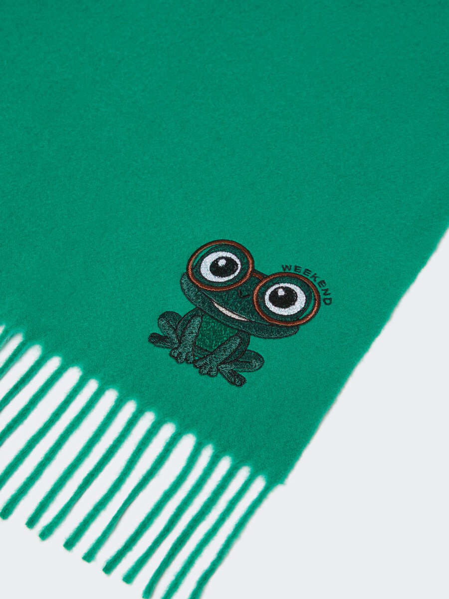 Stola rettangolare personalizzata con dettaglio ricamato all’estremità.