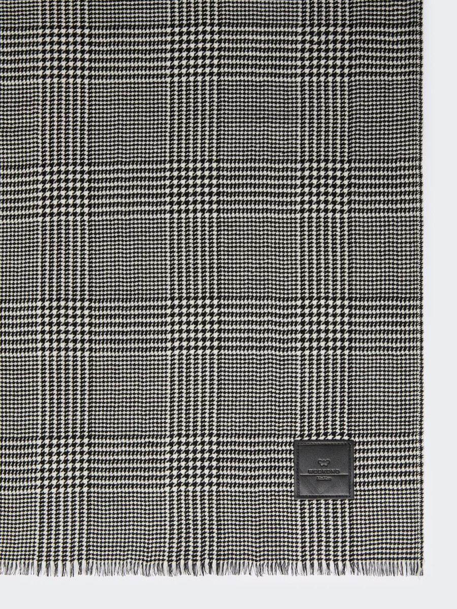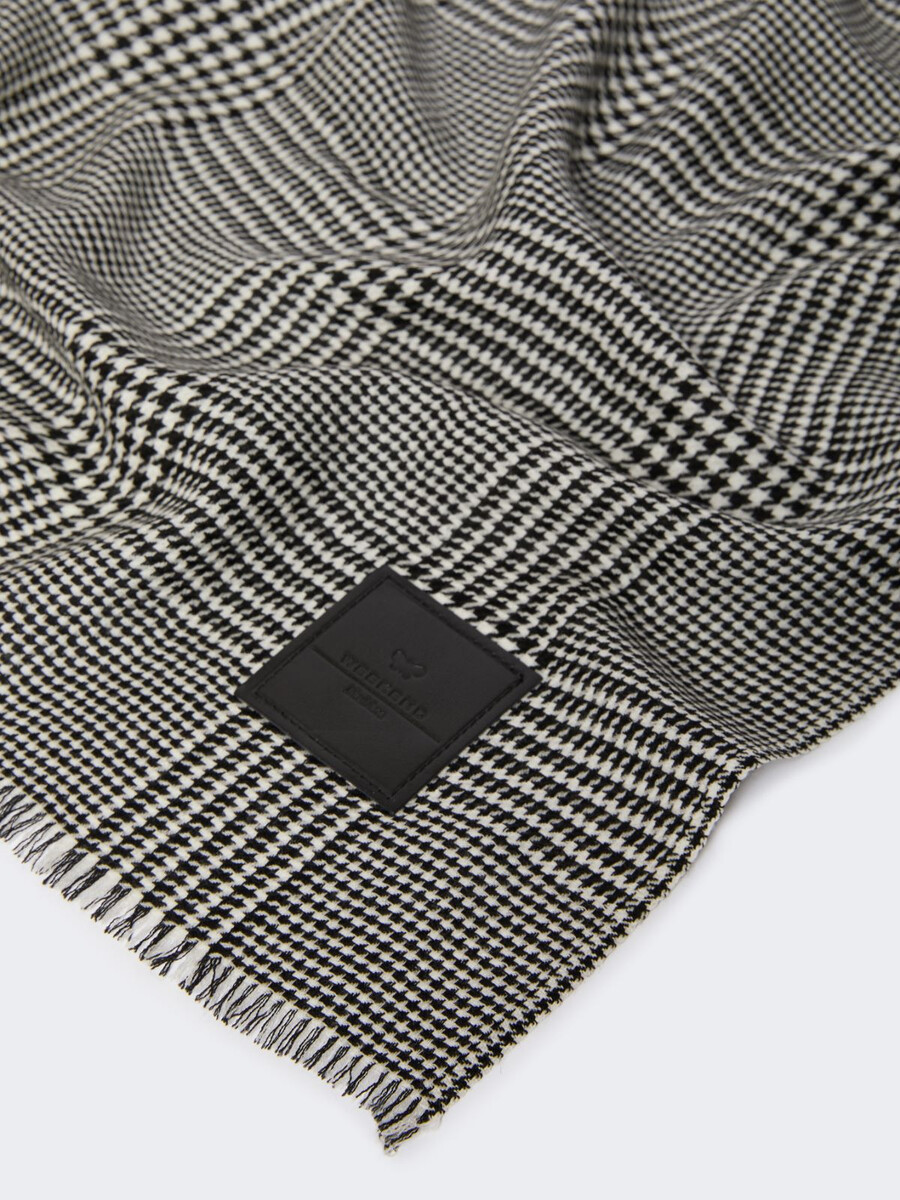 Stola ampia e avvolgente, tinta in filo con disegni di ispirazione maschile.