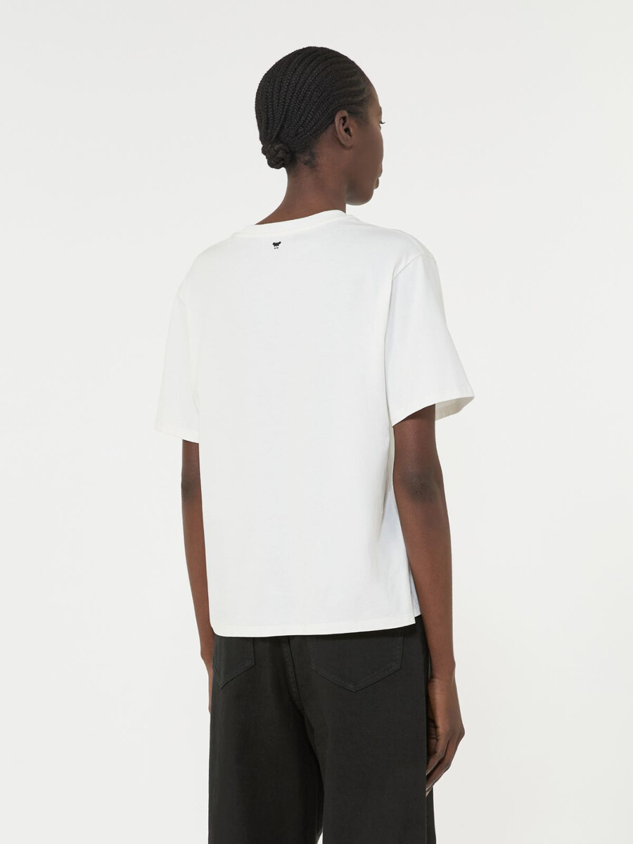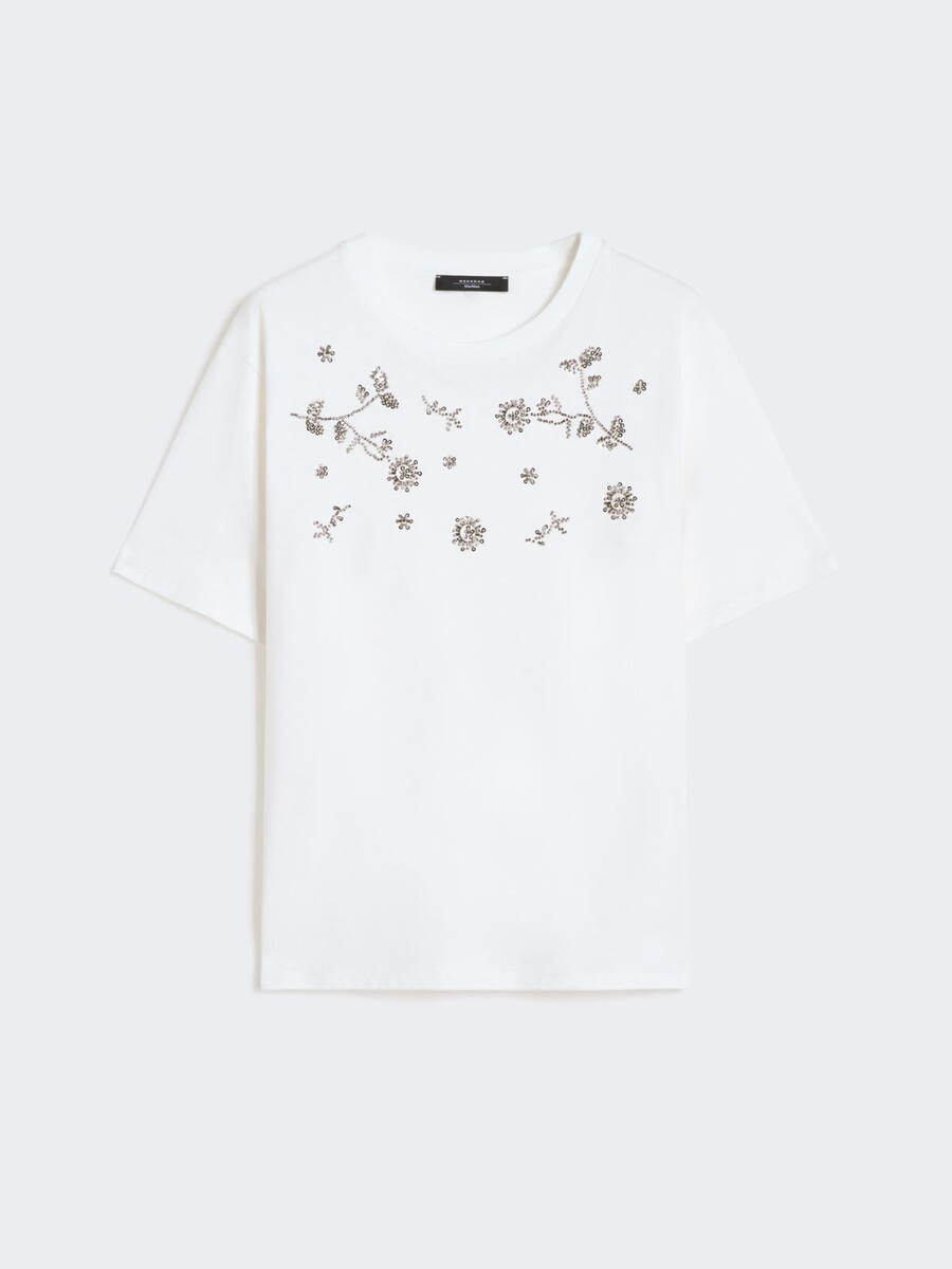 T-shirt in jersey con stampa e ricamo – BIANCA