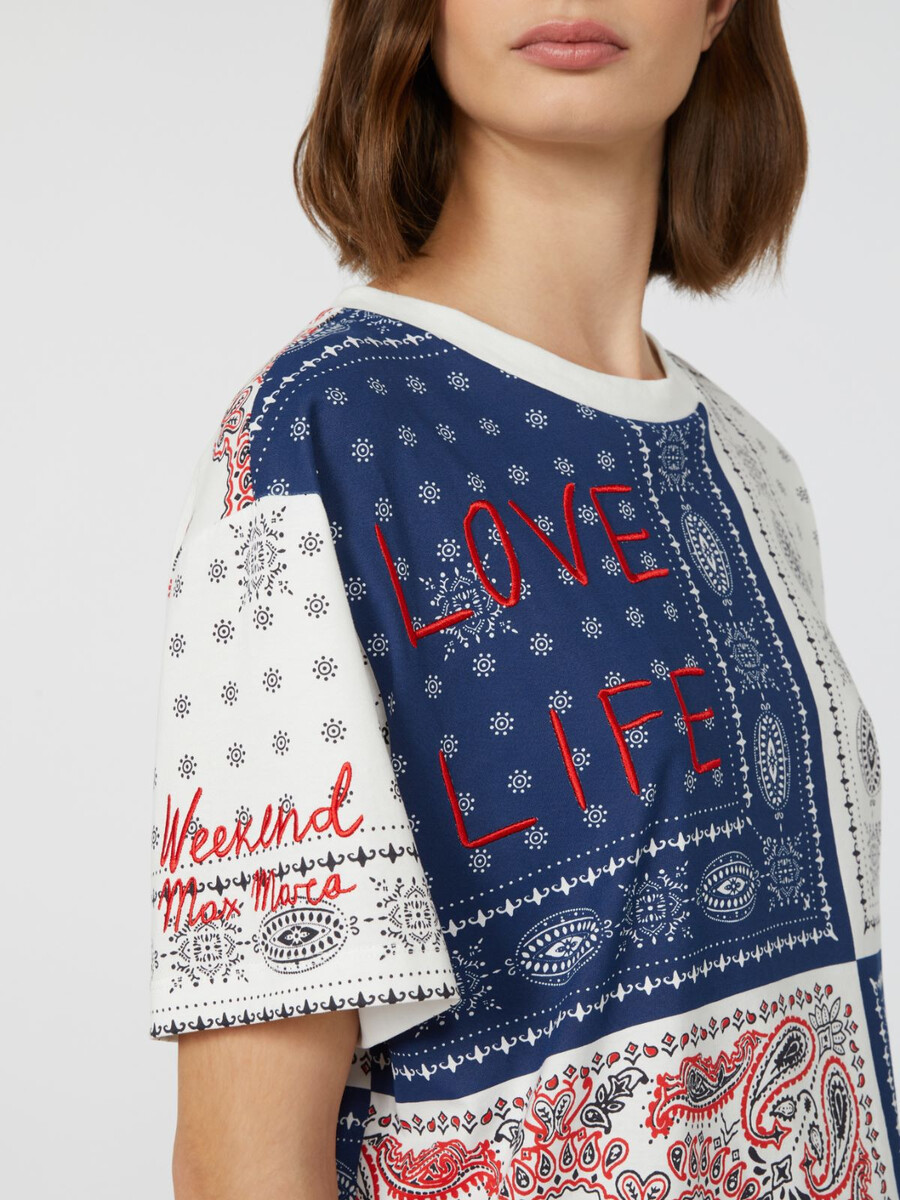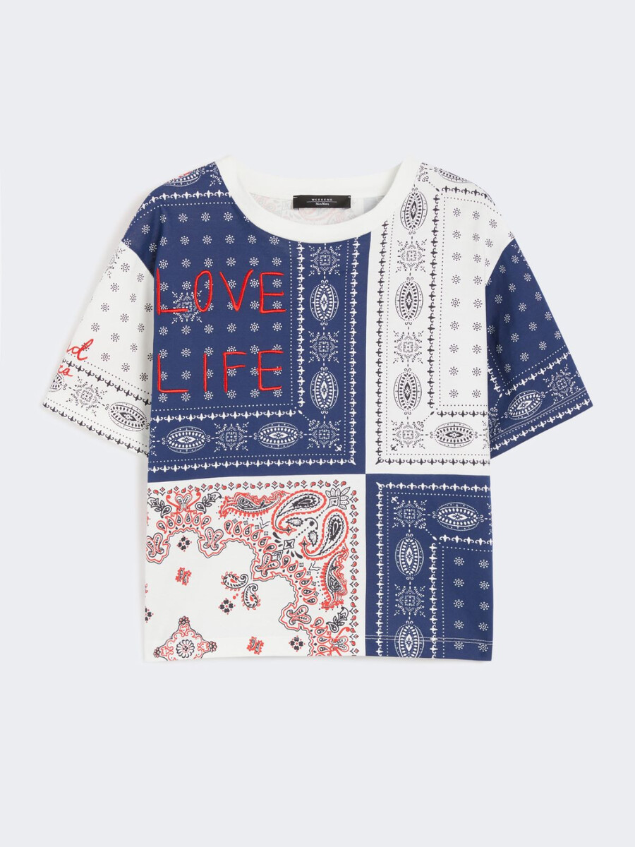 T-shirt basic personalizzata con stampa all-over e ricamo sulla manica sinistra.