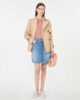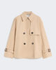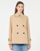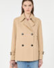 Trench corto doppiopetto caratterizzato dalla patta antivento anteriore e dai cinturini ai polsi.
