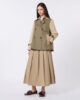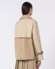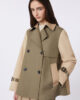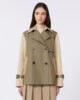 Trench corto doppiopetto caratterizzato dalla patta antivento anteriore e dai cinturini ai polsi.