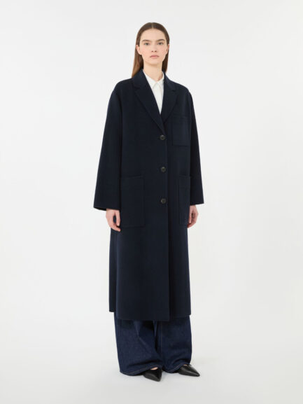 - Cappotto realizzato in doppio drappeggio di pura lana cucito a mano